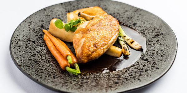 The main course will be a rosemary butter roasted breast of Cotswold chicken with caramelised white onion and sage puree, potato gratin, roast winter greens and a thyme and red wine sauce. For our vegetarian guests, we have a colourful beetroot risotto with caramelised onion and a red chicory salad.