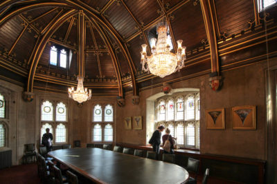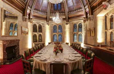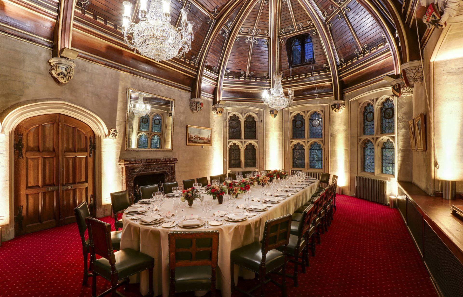 The Chief Commoner’s Parlour is a striking and intimate room. Featuring a large oval table, open fireplace and beautiful ornate features. The eye-catching gilded wood roof and two decadent chandeliers make the space ideal for small meetings, lunches and dinners.