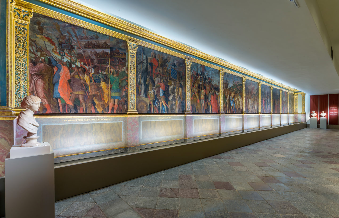 Andrea Mantegna was one of the most famous and important artists of the early Italian Renaissance. The ‘Triumphs of Caesar’ are nine huge paintings that are considered to be one the finest achievements in Renaissance art. This spectacular setting is the perfect space for a standing receptions.