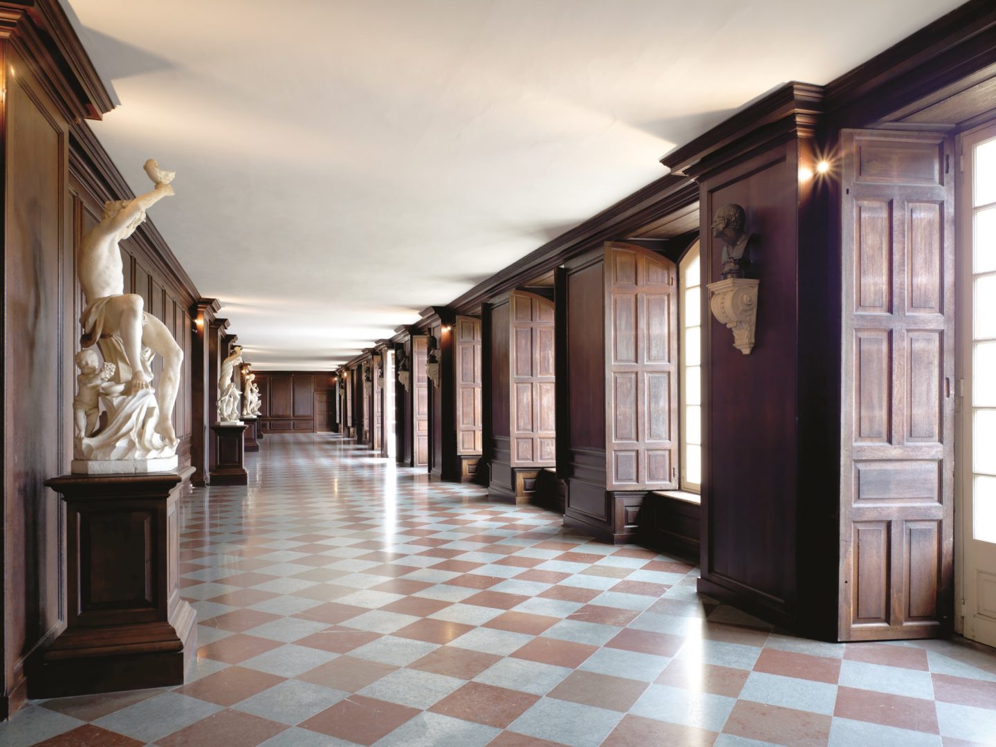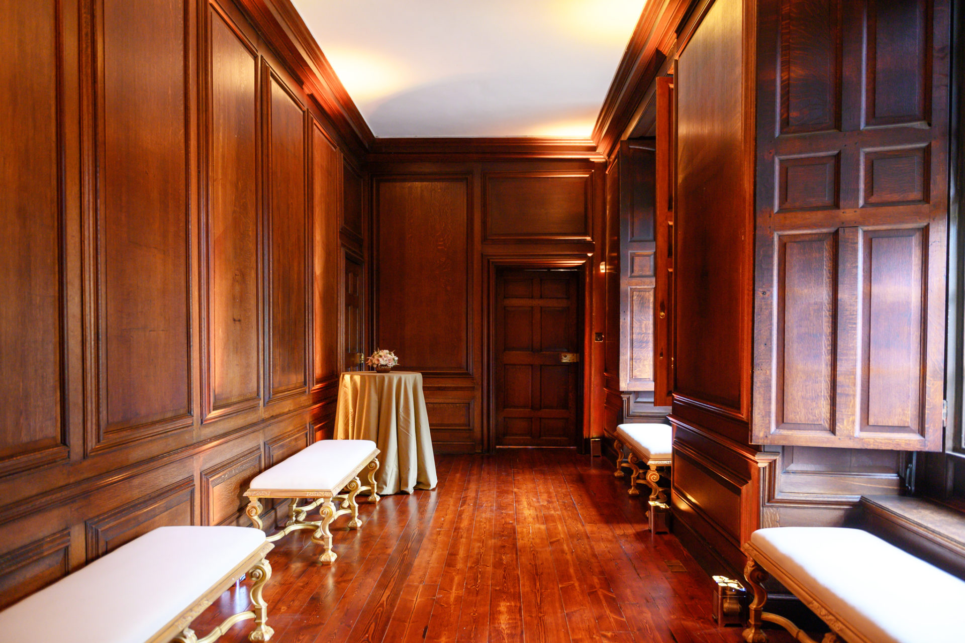 This beautiful elegant room was designed as a private greenhouse for King William III. Today guests can enjoy its sculptures, wood paneling and classic black and white floor tiles during a reception.