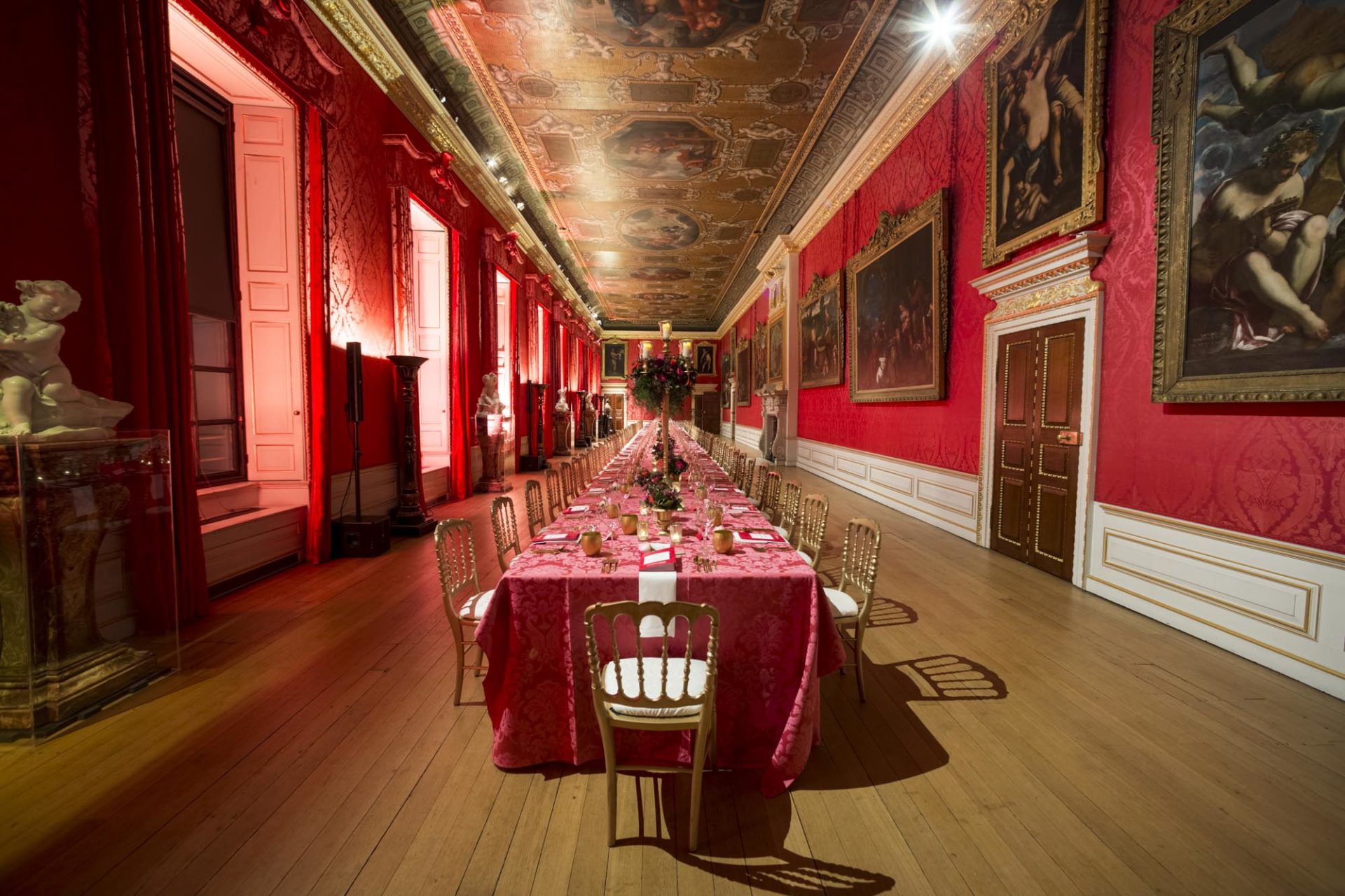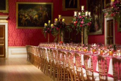 Sumptuously decorated with red damask, fine oak joinery and a series of seven canvases by William Kent, showing scenes from the life of Ulysses. The largest of the State Apartments, The King’s Gallery can hold up to 170 guests for drinks, or 110 guests for dinners.